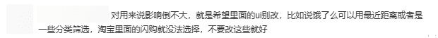 虽然饿了么改名淘宝闪购已经成了定局,不过摆在淘宝闪购面前还有些问题需要解决,比如用户体验上、界面设计上,都需要再下功夫。